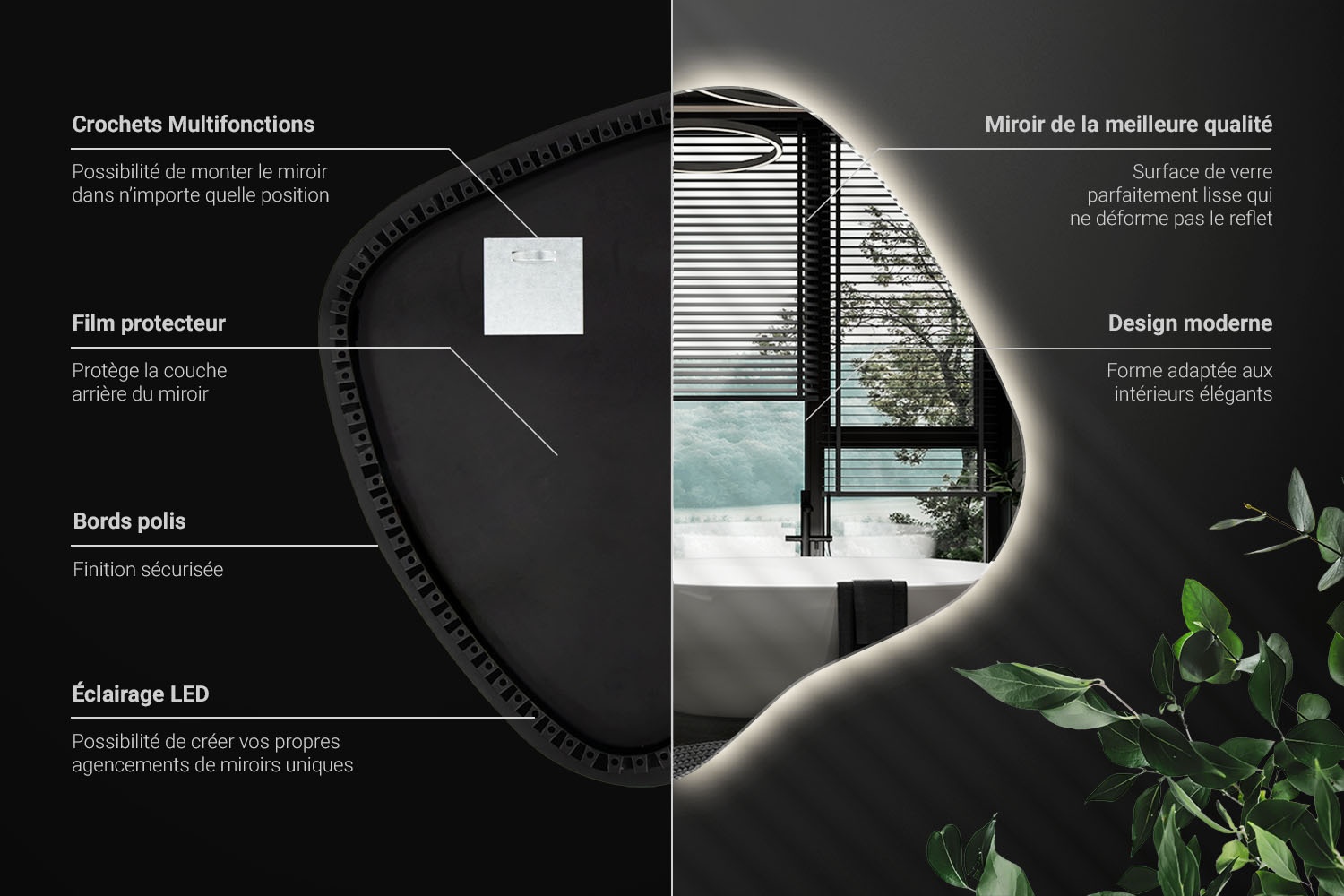 Bienvenue dans le monde des miroirs qui reflètent non seulement des images, mais aussi notre engagement envers la qualité. Chacun de nos miroirs allie la plus haute qualité de fabrication à l'esthétique que vous recherchez!